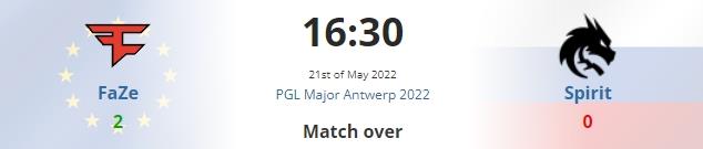 A FaZe-nek eddig közel tökéletesen alakul az idei éve, nagyon jó formában van a csapat, néha-néha vannak megingások, de szerencsére tudják orvosolni őket. Ellenfelük a Spirit, akikre senki sem mert volna fogadni, hogy ilyen messzire eljuthatnak, de Ők rácáfoltak mindenkire.