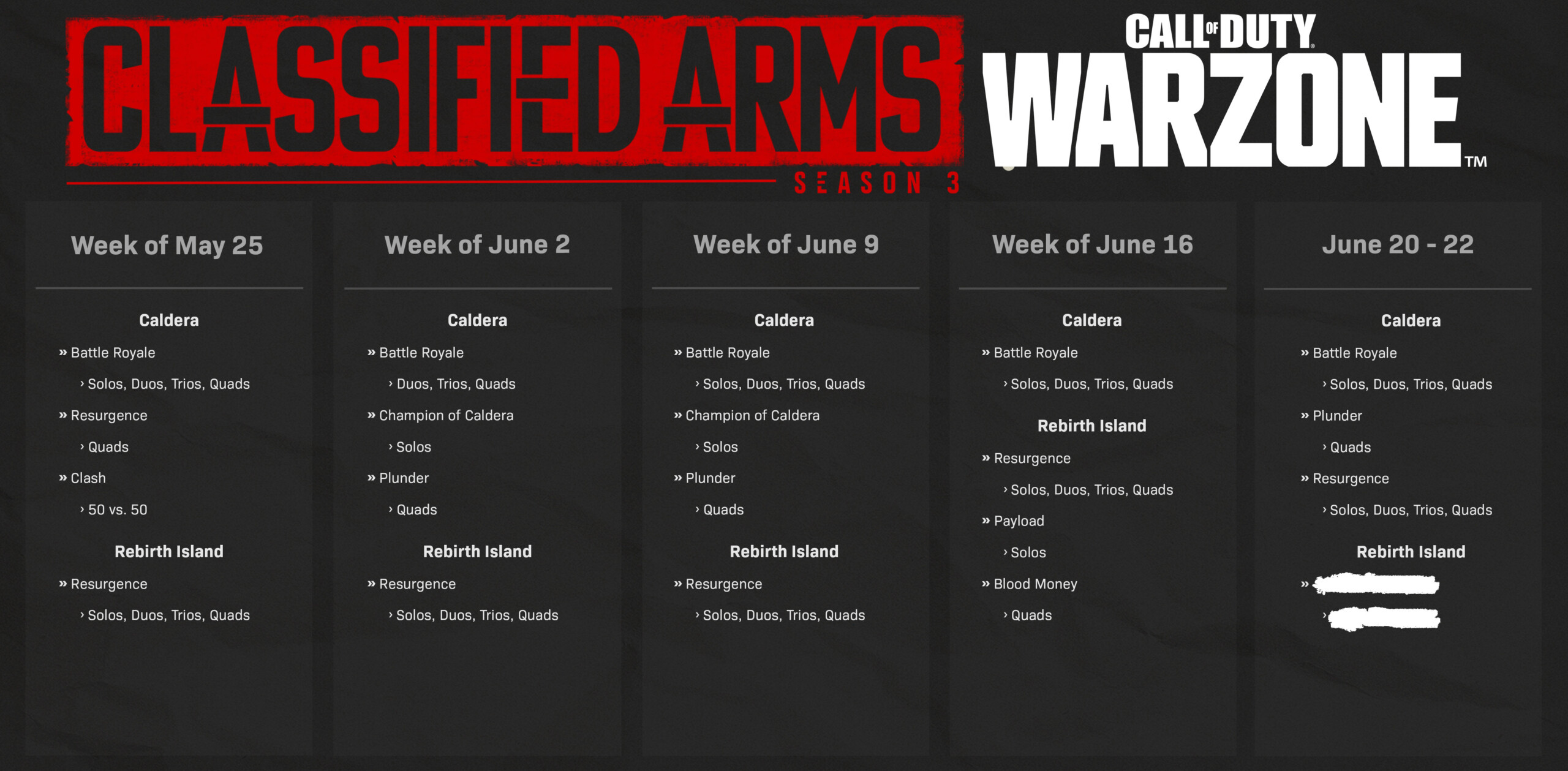 Meglepődnénk, ha a Caldera exkluzív mód megérkezése előtt ne kapnánk egy bővebb tájékoztatót a fejlesztőktől a pontos szabályokkal. Június 20. és 22. között extra meglepetésre számíthatnak a Rebirth Island rajongók is, hiszen egy titkos játékmóddal készülnek nekik a fejlesztők. Egyelőre sok információt nem kaptunk ezzel kapcsolatban, de biztosan megelőzi majd egy kiadói marketing hadjárat.