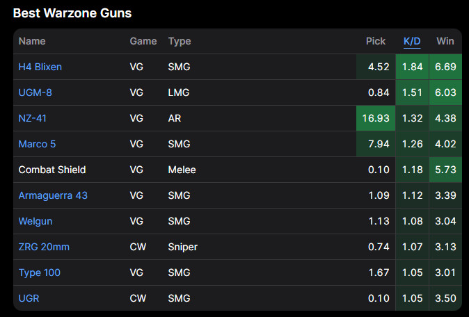 A Reloaded frissítésben megérkezett újdonságot sokan egyből a meta várományos kategóriába sorolták, úgy tűnik nem is véletlenül. Toronymagasan vezeti a K/D alapú listát, a második helyezett UGM-8 1.51-es aránya sem közelíti meg a H4 Blixen mellett leolvasható 1.84-es értéket. A fejlesztők kigyomlálták teljes mértékben a fegyverrel összefüggő hibákat, így az új pályán. A Season 4 további időszakában is nagyot villanthat majd, ha a Raven Software munkatársai is úgy akarják, hiszen a pár napja beesett nerfek ellenére továbbra is pusztít mindkét szigeten.