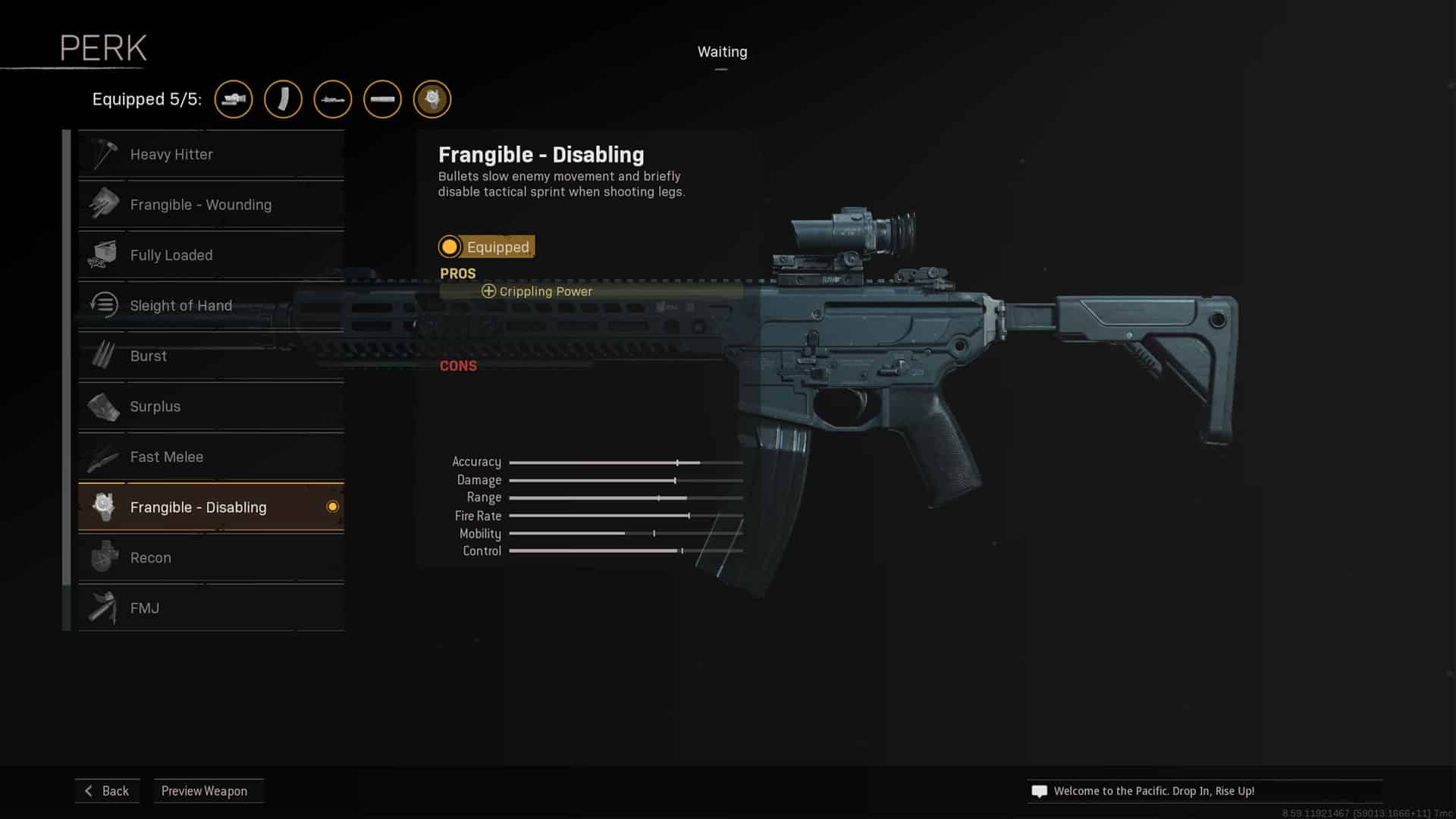 A Serpentine perk csak akkor aktiválódik, amikor a játékos sprintel, és pontosan ez teszi a Frangible – Disabling perket hatékonnyá vele szemben. A perk használatakor a töltényeid lelassítják az ellenséget, sőt a lábonlövés megakadályozza a Tactical Sprint használatában. A célpont tehát megáll, így a Serpentine nem aktiválódik, teljesen használhatatlanná válik.