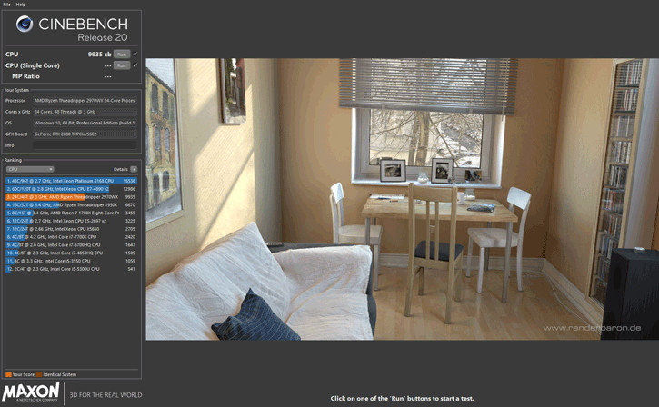 Mára kihagyhatatlan benchmark lett CPU fronton, minden nevesebb oldal tesztjében találkozhatunk az R20, vagy R23 verziók számaival. Az AIDA64-vel ellentétben itt egy kézzelfogható pontszámot is kapunk, melyet összehasonlíthatunk az azonos modellek pontszámaival. Arra azonban mindenképp figyelnünk kell, hogy csak azonos verziójú számokat állíthatunk egymás mellé. Így R23 mérést R23 méréssel, R20-as mérést R20-as méréssel kell összehasonlítanunk. A CineBench R23 szintén ingyenesen letölthető program, gyakorlatilag két RUN gombbal indíthatjuk is az egyszálas és többszálas méréseket. Stresszteszthez értelemszerűen a többszálas (sima CPU felirat melletti, nem a Single core) opció utáni „Run” gombot kell lenyomnunk. Külön nem mutatja a hőmérsékleteket, így ezek ellenőrzéséhez a HWInfo-t érdemes használnunk.