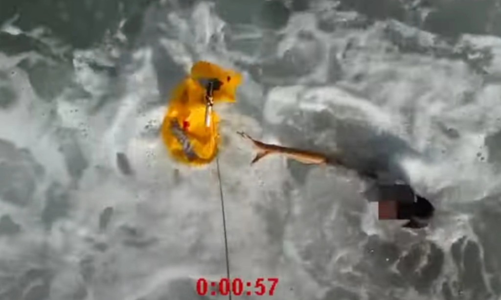így viszont a mentőövbe kapaszkodva biztonságban megvárhatta, hogy érte menjenek a jet-ski-re pattanó vízimentők.
