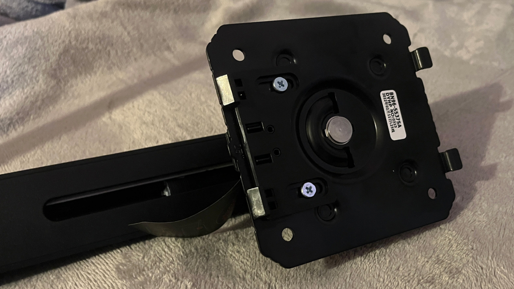 Az összeszerelés nem is lehetne egyszerűbb, a láb becsavarozása után gyakorlatilag csak be kell pattintanunk a fém tartóelemet a monitor hátuljába. Semmi felesleges csavarozgatás, semmi szenvedés, pár perc alatt már az asztalunkon figyelhet a frissen kibontott monitor. A láb kialakításának köszönhetően rettentően stabil, így egy-egy hevesebb pillanatnál sem fog oda-vissza mozogni az asztalon.