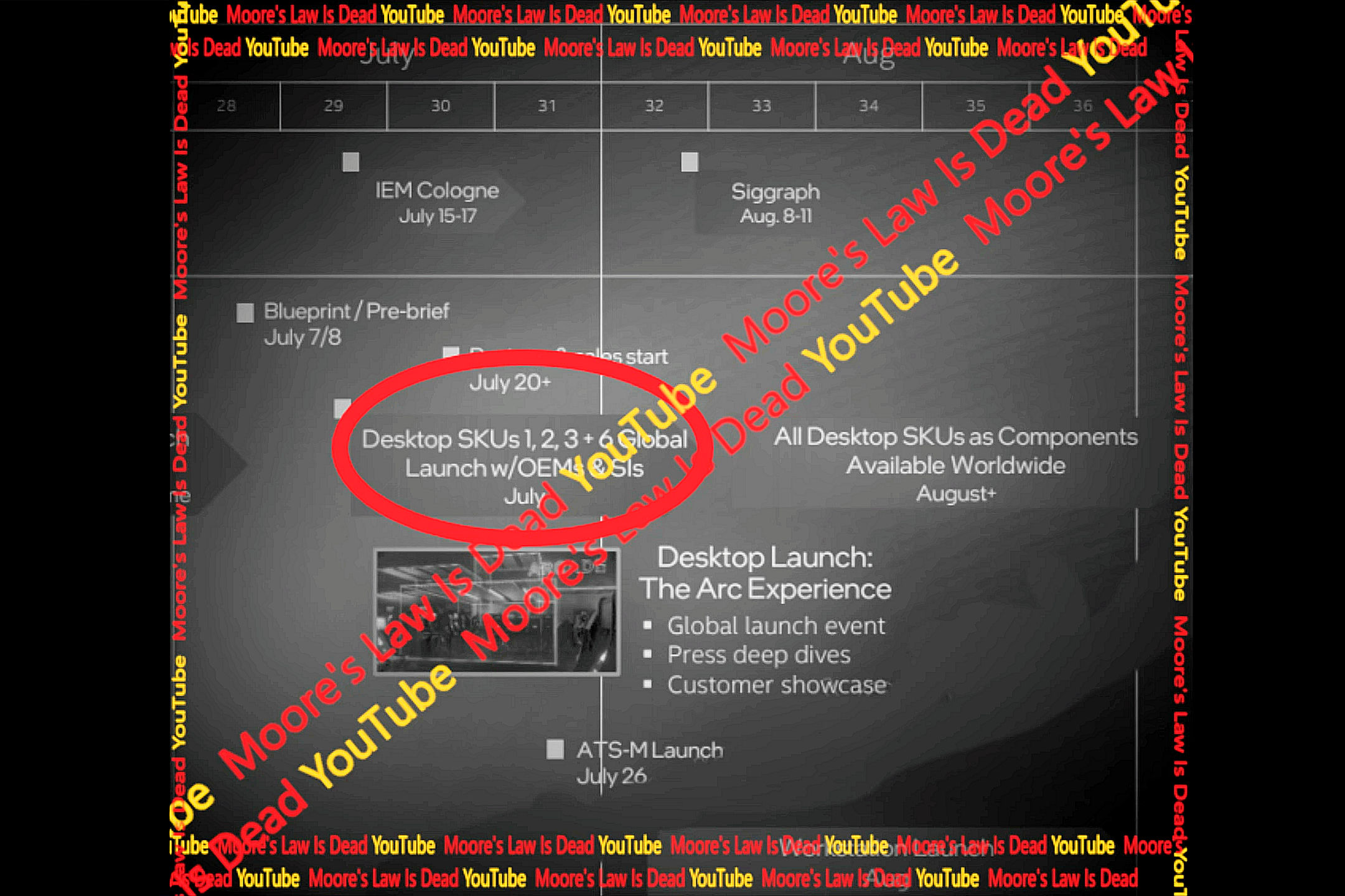A kiszivárgott képeket ezúttal is a Moore’s Law is Dead’s csapatának köszönhetjük. Az Intel számításai alapján július 3. hetében legalább négy ARC kártyának el kellett volna startolnia globálisan is. Jelenleg Kínában érhető el egyetlen egy kártya az A380 képében, de az erősebb modelleket még ott sem lehet kapni. Nem véletlen tehát, hogy júliusban több helyen szerepeltette a kártyát és a mérnököket az óriáscég, ám úgy tűnik, hogy utolsó pillanatban is porszem csúszott a gépezetbe.