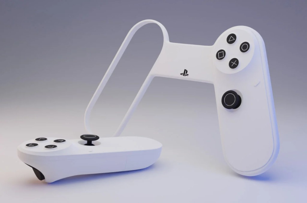 A tervező, Evgenia Burmistrova 3 az 1-ben PlayStation 5 vezérlője mintha a jövőből pottyant volna az ölünkbe, hiszen egyszerre hagyományos DualShock és egy pár Wireless VR kontroller, amire akkor van szükségünk, ha virtuális valóság headsetet viselünk egy játékhoz.