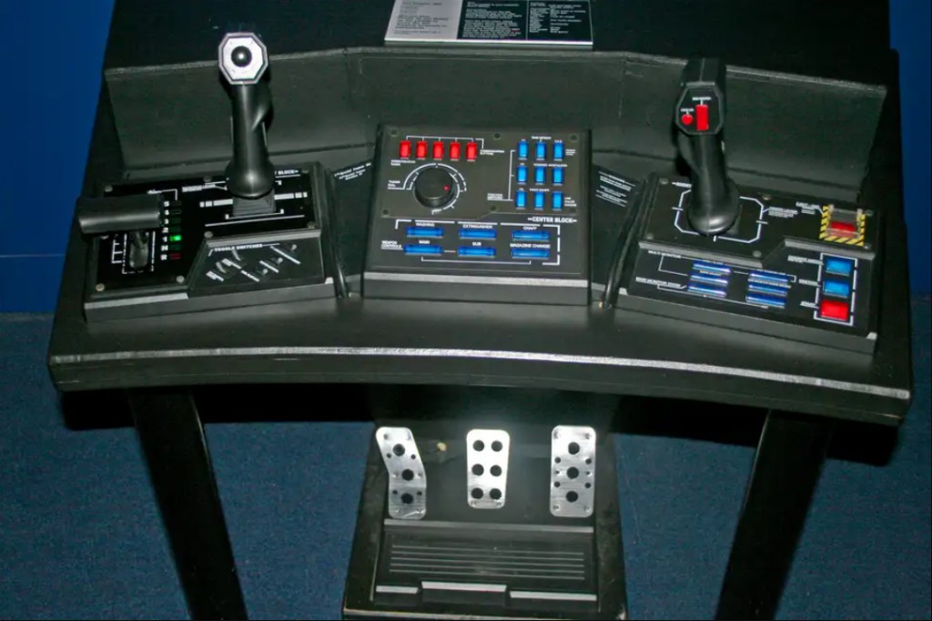 A dohányzóasztal méretű kontrollernek a két joystick mellett 40 gombja, gázkarja és több pedálja is volt. MINEK?!