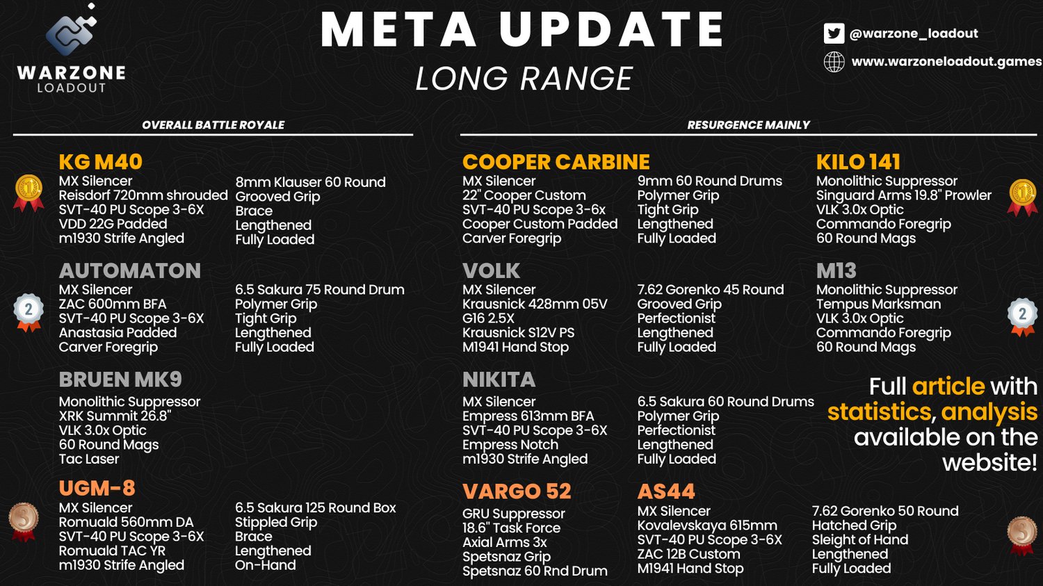 Pénteken kiveséztünk már pár fegyvert, melyek a jelenlegi meta nyertesei lehetnek. Időközben a tartalomgyártók sem pihentek, így újabb tesztelésekre, statisztikai elemzésekre került sor. Ezúttal a Close Range, azaz a messzire is hatékony fegyverek kerültek terítékre. Warzone Loadout a játékmódokat is külön bontotta, így a Caldera és a kisebb szigetek rajongói eltérő ajánlásokat kapnak.
