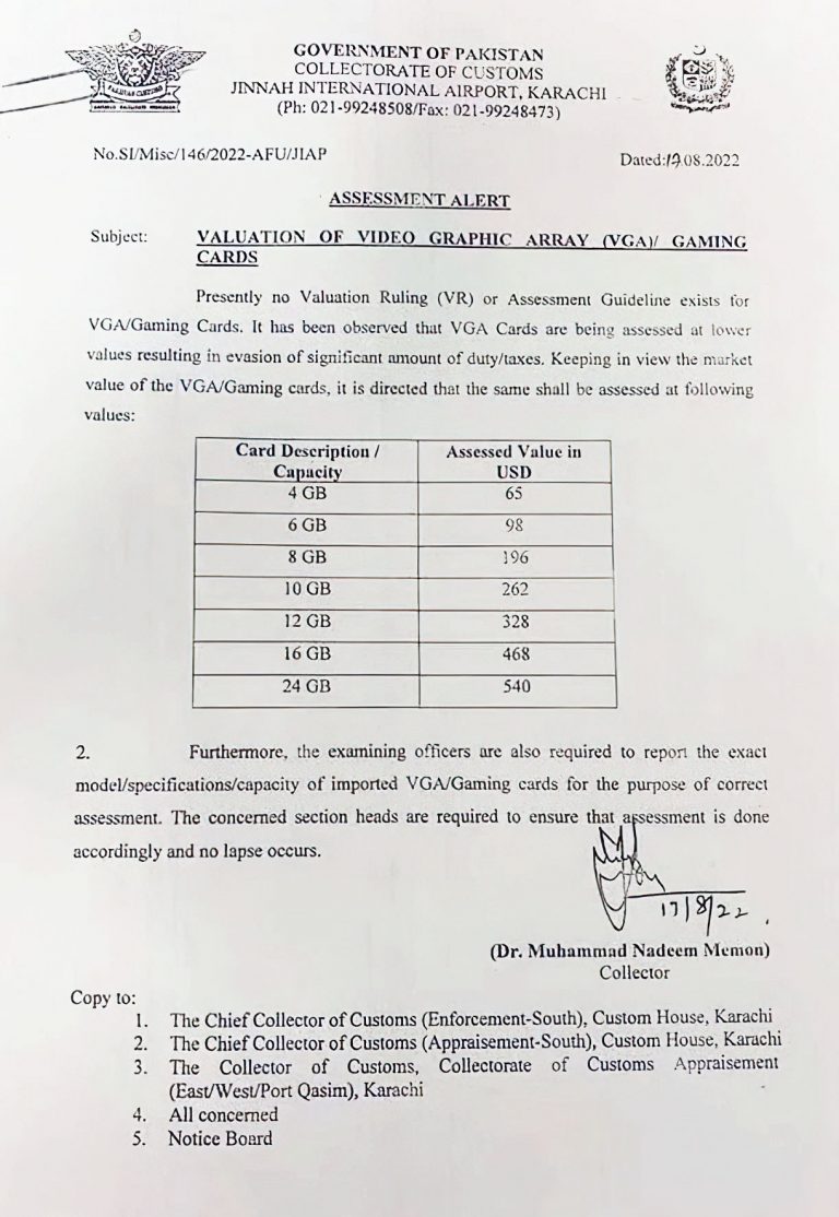 Pakisztánban, rengeteg országhoz hasonlóan a videókártyák MSRP árához a belföldi adók is hozzáadódnak, így kapjuk meg az egységek pontos árát. Ez jelenleg olyan 36% környékén van, így sok nagykereskedés trükközik az árcédulákkal, hogy kevesebb extra költséget kelljen ráfizetniük. Ennek köszönhetően mind a játékosok, mind az eladók profitáltak, ám az államnak ez érthető okokból nem igazán tetszett.