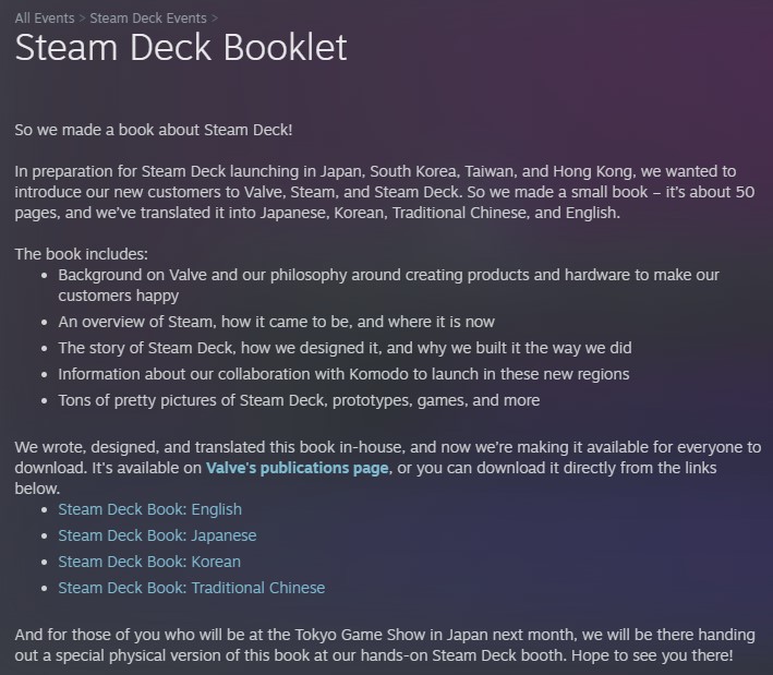 A Valve pár nappal ezelőtt a Steam Deck ázsiai debütálását megünnepelvén kiadott egy PDF dokumentumot, melyben rengeteg információt megtalálunk az eszközzel kapcsolatban. A jelenlegi és jövőbeli tulajdonosoknak is roppant hasznos és érdekes lehet egy ilyen, ezért természetesen angol nyelven is elérhető a koreai, japán és kínai változatok mellett. A Booklet utolsó oldalán a Valve egyértelműen leírja, hogy több verzióval is érdemes lesz kalkulálni az elkövetkezendő években.
