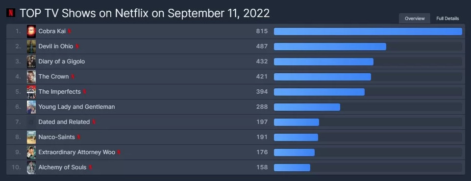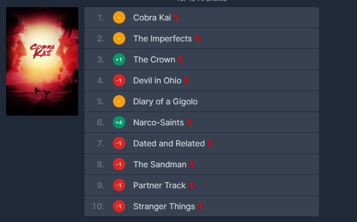 A sorozat persze nem csak nálunk, de a világ több országában szépen tör előre. Például Ukrajnában 1., Bulgáriában, Olaszországban és Máltán pedig 2. helyen szerepelt szeptember 11-én. Összességében a műsort csak az olyan sorozatok tudták megelőzni, mint a Cobra Kai, Devil in Ohio és Diary of a Gigolo.