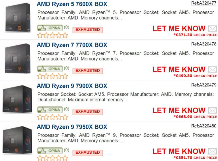 Az AMD augusztus végén hivatalosan is leleplezte az AMD Zen 4-es architektúrát. A PC-s környezetbe érkező processzorok a 7000-es számozást viselik majd magukon. Az első körben négy modell debütál majd, mellyel a teljes közép és felső kategóriát szeretné lefedni az óriáscég. Az AMD hivatalosan szeptember 27-ére időzítette a rajtot, ám egy spanyol áruházban felbukkantak a processzorok árai.
