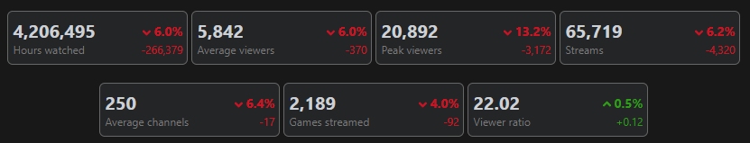 A harmadik Ruben viszont többet streamelt ugyan, mint augusztusban, de erre azért is volt szüksége, hogy ne essen nagyon vissza. Az utóbbi időben szinte csak szerencsejátékot népszerűsítő streamer átlagos nézőszáma ugyanis jelentősen megcsappant.