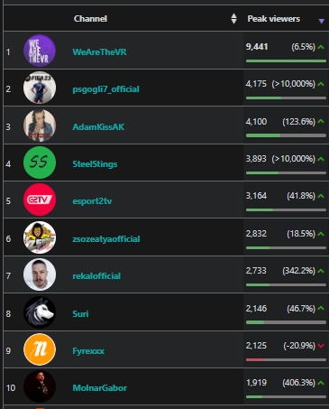 A TheVR mellett a psgogli7_official nevű FIFA-játékos ment hatalmasat, aki épp csak a hónap végén költözött Twitchre, máris kőkemény statisztikákkal büszkélkedhet. A streamer valamivel több mint 30 órán keresztül nyomta a FIFA legújabb részét, amire átlagosan 1500-1600-an voltak kíváncsiak, és bár ugyan túlfutotta a szeptembert, de október 2-án, vasárnap több mint 4100-an nézték a meccseit egyszerre.