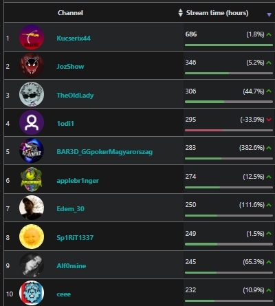 Kucserix például azzal tűnik ki nagyon a tömegből, hogy megszállott módjára streamel: szeptemberben 680 óránál is többet volt élő adásban, ami már csak azért is brutális teljesítmény, mert egy átlagos munkahete így ~170 órára jön ki, ami 10 órával több, mint egy átlagos 8 órás munka egy teljes hónapban. A streamer egyébként nagyon sokféle játékkal játszik, így érdemes lehet benézned hozzá, ha még nem ismered.