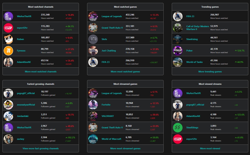 Szeptember legnagyobb sztárja ezúttal is a League of Legends volt, amit több mint 432.000 órán keresztül néztek a magyarok. Kissé szellősen következik a GTA V, majd a szerencsejátékos streamek, melyek mögött a beszélgetős adások, illetve a FIFA 23 érkezik a top5-be.