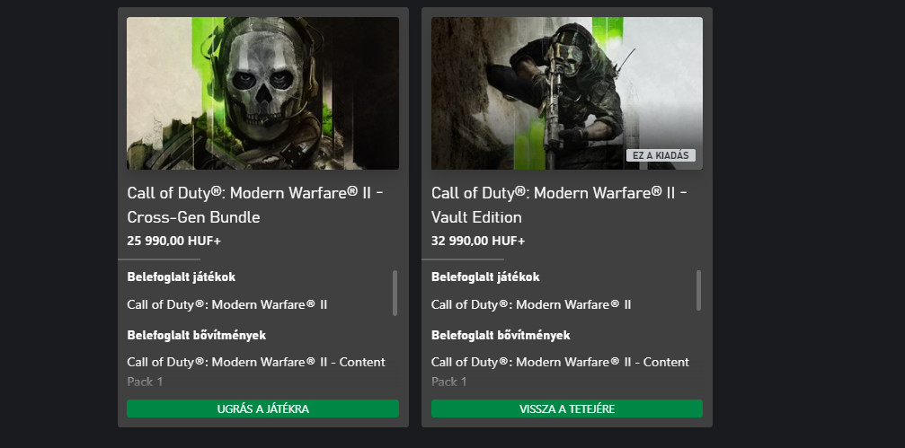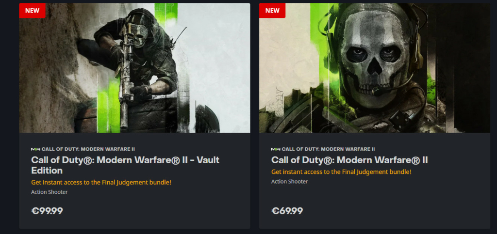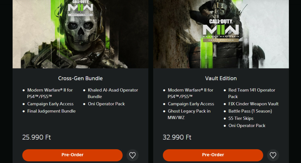 Jelen pillanatban 2 kiadás érhető el a Call of Duty: Modern Warfare 2-ből. Ne feledjük, hogy az Infinity Ward 60 dollárról 70-re emelte a Standard Edition árát, a Vault Edition pedig 109 dollárba kerül. Lentebb írjuk a forint árakat. A játékot online és dobozosan is előrendelheted.