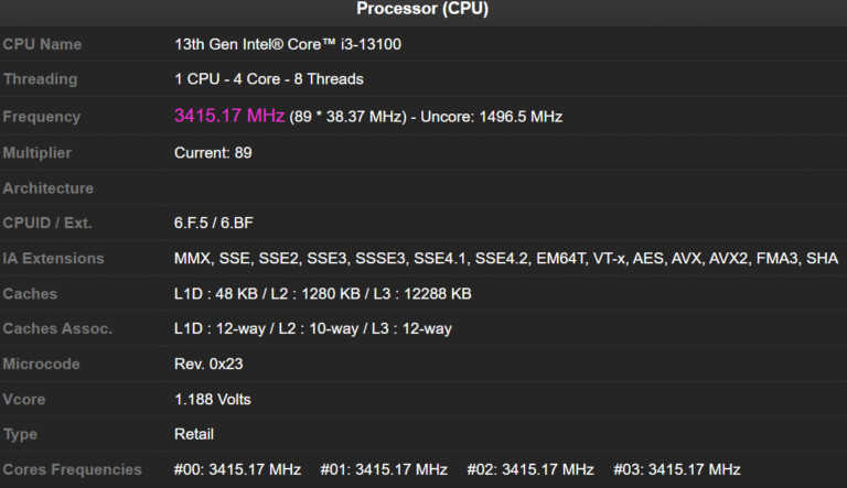A legnagyobb kérdés az volt, hogy az Intel tervez-e extra „E” magokat pakolni a legolcsóbb egységbe. Tavaly az i5-12400 nem kapott ezekből, ám idén az i5-13400 már 6+4 felállásban érkezik. Úgy tűnik, hogy az i3-13100 nem kap ilyen kezelést, „csupán” négy P mag felel a számításokért. Ilyen téren tehát nem lesz változás, marad a klasszikus 4 mag – 8 szál felépítés.