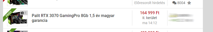 A fenti grafikonokból és táblázatokból úgy tűnik, hogy októberre némileg megtorpant a korábban megszokott, folyamatos csökkenés, hazai árak is hasonló arányban alakulnak, ám a szokásos “USA vs. EU” felár mellett Magyarországon a nem túl kedvező euró/dollárárfolyam is beleszól a történetbe. Ennek ellenére jelenleg RTX 3070-eket is vásárolhatunk már 150-160 ezer forint környékén használtan (-augusztusban ez még 190 ezer volt!-), pár hónapja ezt az ársávot pedig egyértelműen a két kategóriával gyengébb 3060 uralta. Újonnan mélyebben a zsebünkbe kell nyúlni, de már 200 ezer forint alatt is találhatunk 3060-at, többek között a Leet Webshopjában is. Remélhetőleg az ősz utolsó felében is kedvezően alakulnak akár az új, akár a használtpiaci árak.