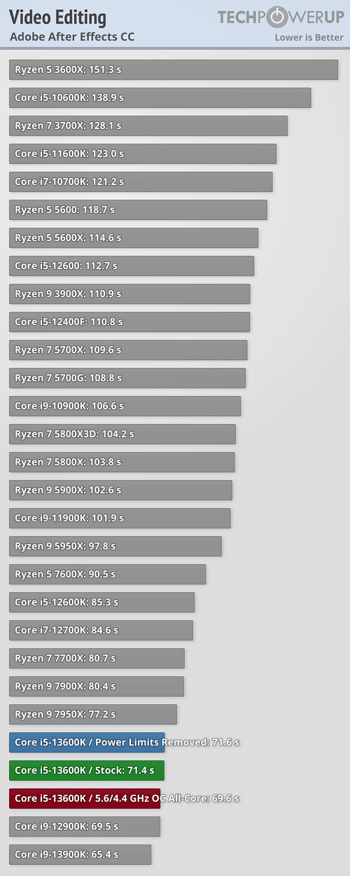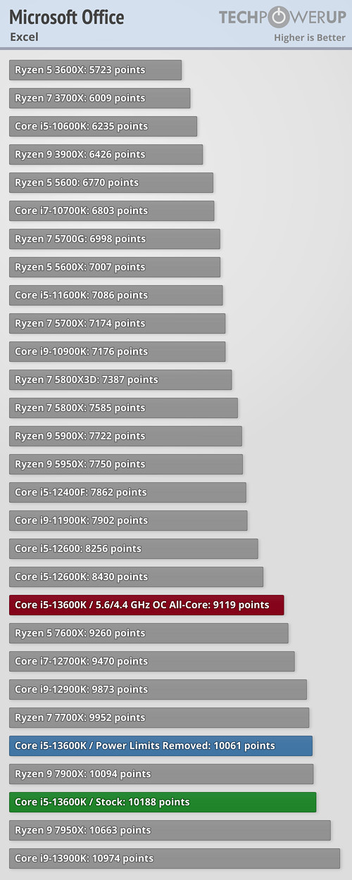 Ahogy látható, a multimédiás és egyéb alkalmazások esetében nem feltétlenül beszélhetünk egyértelmű Intel győzelemről. Itt már bizony az egyes fizikai, nagyteljesítményű magok és szálak is egyre jobban számíthatnak. Azoknál az alkalmazásoknál, ahol azonban továbbra is az egymagos teljesítmény a mérvadó az Intel i5-13600K az AMD Ryzen 9 7950X szörnyét is megszorongatja. Egymagos teljesítményben egyértelműen a Raptor Lake processzorok vezetnek, ezt kár is tagadni.