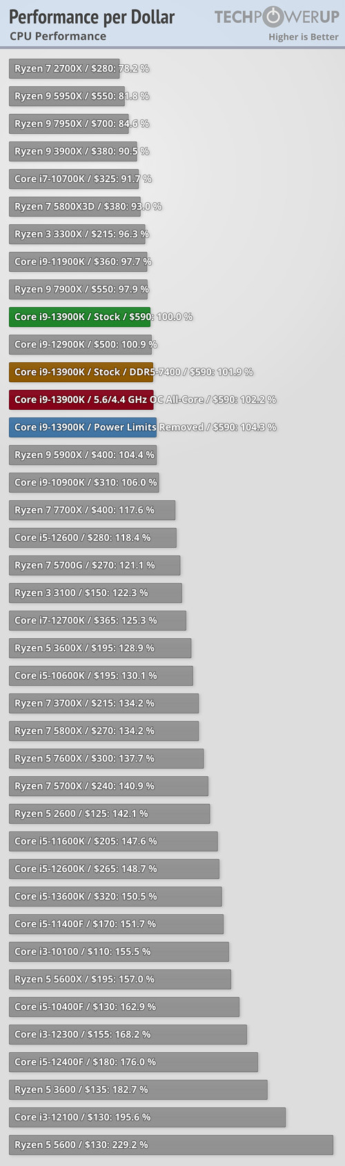 Az Intel két modellje a top kategóriát nyújtja akár gaming, akár alkalmazások esetében. Bizonyos körülmények között, ahol számít a 20 és 32 szál közötti különbség egyértelműen nyer az i9-es modell, ám az átlagos gamereknek a 13600K (és a később érkező 13400) jobb és költséghatékonyabb választás lesz. A megmaradt pénzt pedig ütősebb videókártyába invesztálhatja a vásárló. Mindkét processzor erősebb játékok alatt, mint a Ryzen 7000 szériája, alkalmazások alatt pedig már a „kis” i5 is Ryzen 9 7950X-et szorongatja, az i9 túl is lép rajta. Nyers erőben tehát most az Intel nyert. A gyártó mellett szólhat még a DDR4 támogatása, illetve az is, hogy az előző generációs B/H alaplapokba is bepakolhatjuk az újdonságokat.