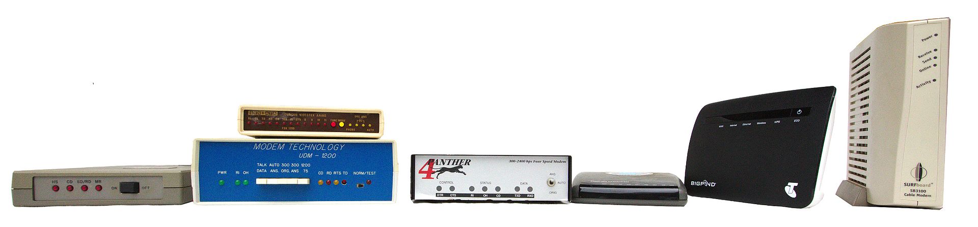 A modem gyakorlatilag az internetes átjárónk. Legyen szó kábeles, üvegszálas, netán ADSL kapcsolatról, minden esetben szükségünk van egy ilyen eszközre. A modem átalakítja a számítógépünkből kijövő digitális egyeseket és nullákat analóg információvá és természetesen másik irányba is ez történik. A fentebb említett kapcsolatoknak megfelelően pedig a kábelek ezt viszik tovább a szolgáltatónk állomásaihoz. Innen eredeztethető az eszköz neve is, hiszen ezeket a folyamatokat modulációnak és demodulációnak nevezzük. Ebből született a Mo-dem kifejezés. A szolgáltatók szinte kivétel nélkül ingyen vagy minimális bérleti költségért biztosítják a felhasználóknak, általában a csere sem megengedett.