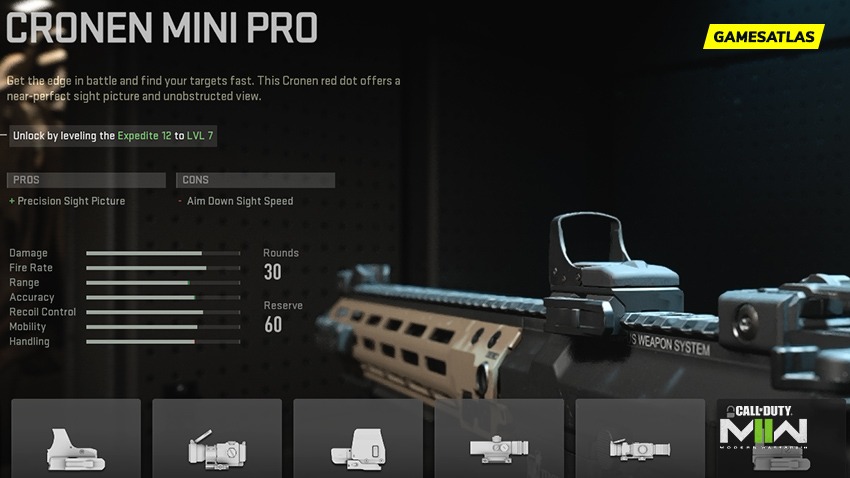 Két kiegészítő feloldásával pillanatok alatt a loadoutunkba illeszthetjük a letisztult célzókákat. Az attachmentek egészen pontosan a Cronen Mini Pro és Corio RE-X Pro neveket viselik, a feloldásuk sem tűnik valami nehéznek: