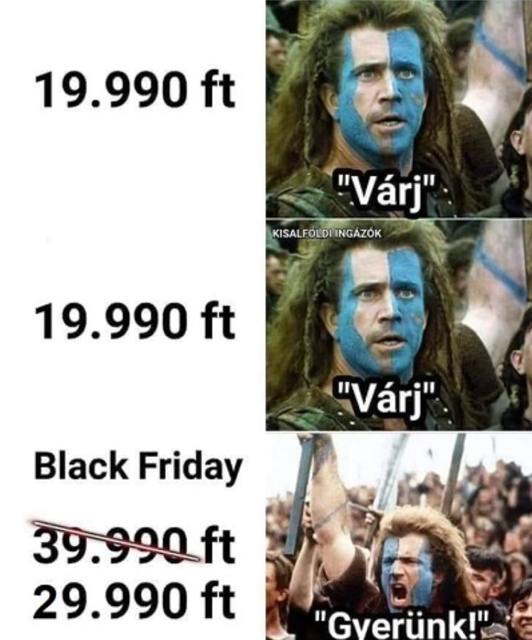 Ők meg is érdemlik a magyar Black Friday-t, ami unikum a világban: egymást érik a kamuból felnagyított korábbi árak, az engedménynek álcázott drágulások és a „készlet erejéig” akciók (ahol a készlet mondjuk 5 darab). Ezek a kópéságok ugyanúgy jellemzőek a fizikai üzletekre, mint a webshopokra, szóval utóbbival legfeljebb a sorban állást és a személyes konfliktusokat kerülöd el. Mondjuk van helyettük más baj dögivel…