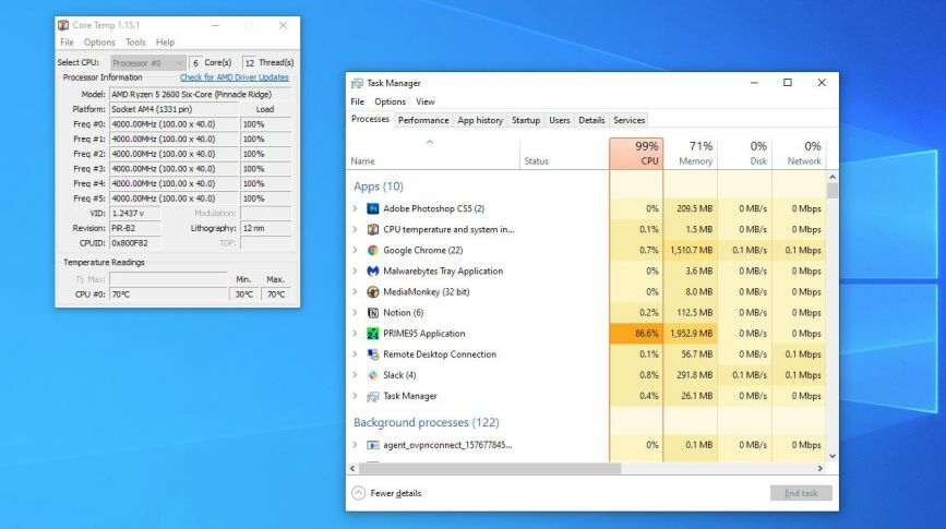 Az első, amire gyanakodhatunk a szokatlanul zajos számítógépnél, az a nem kívánt alkalmazások ténykedése. Jelenthet ez vírust, malware-t vagy szimplán egy beragadt programot is. Szerencsére már a Ctrl + Shift + ESC segítségével előhívható feladatkezelő „CPU” oszlopa is eléggé árulkodó lehet bárki számára. Ha itt szokatlanul nagy százalékokat látunk különösebb indok nélkül, meg is találtuk a problémánk forrását. Távolítsuk el a rosszalkodó alkalmazást, szélsőséges esetben pedig egy Malwarebytes futtatás is ajánlott lehet.