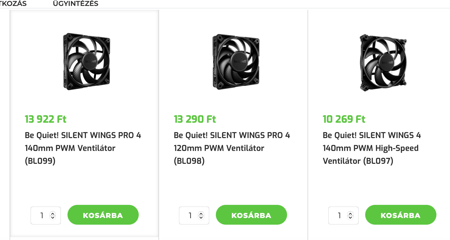 Sajnos az is előfordulhat, hogy olcsóbb CPU hűtőknél vagy gépházaknál sajnos a gyári ventilátorok nem igazán minőségi darabok. Érthető, hiszen valahol spórolnia kell a gyártóknak a budget kategóriában. Sok esetben nem is az adott ventilátorok teljesítményén esik csorba, hanem azok zajszintjén. Érdemes lehet ebben az esetben elgondolkodnunk egy kis minőségbeli előrelépésen. Ebben az esetben a gyárival megegyező méretű(!) példányokra kell vadásznunk, így mindenképp érdemes lecsekkolnunk a hűtő vagy épp a gépház specifikációit. A top kategóriát talán a Be Quiet, Noctua képviseli manapság, ám egy Arctic, Thermaltake vagy épp egy Cooler Master sem fog csalódást okozni.