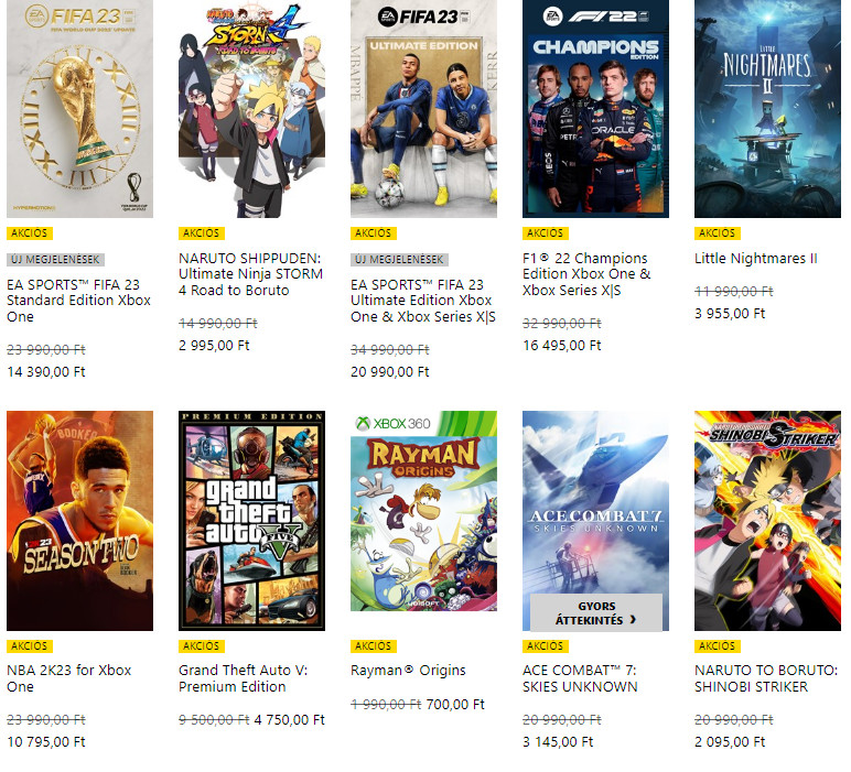 A Microsoft Store-ban külön tudsz szűrni a konzoljátékokra és a PC-s megjelenésekre. Mindkét fülön igen izgalmas akciókat találsz. A FIFA 23 például csak 14 ezer forint, az Assassin’S Creed Black Flag alig több mint 2 ezer, a Star Wars Battlefront 2 pedig alig több mint 1300 forint.