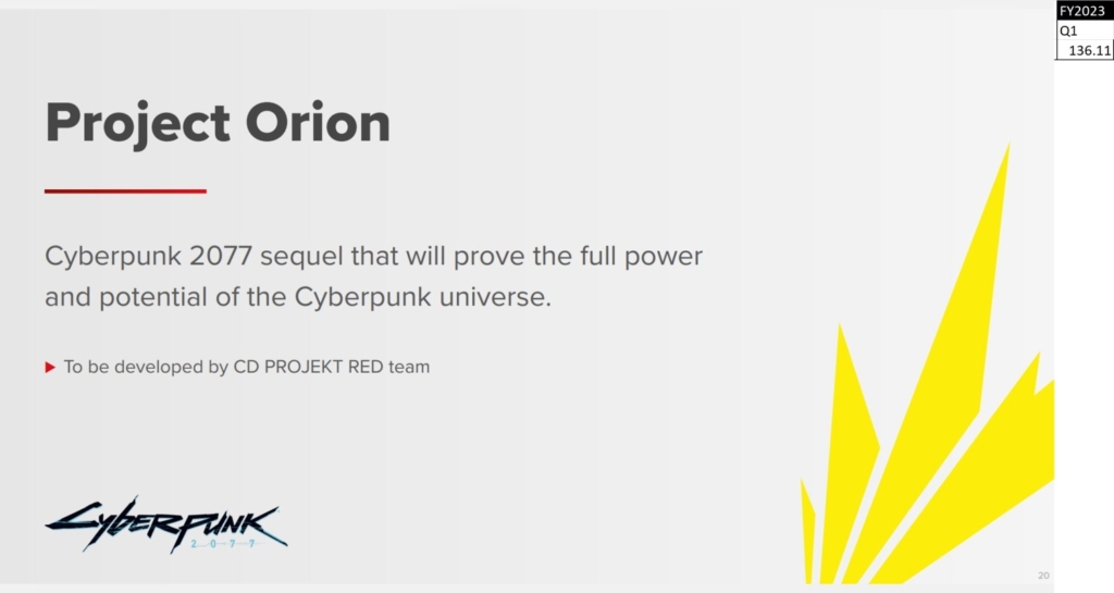 „Az Orion a következő Cyberpunk-játékunk kódneve, ami kiaknázza a sötét jövő univerzumában rejlő lehetőségeket” – mondta a CD Projekt a projekt bejelentésekor.
