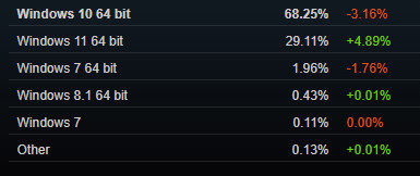 A Windows 10 népszerűsége lassú mértékben, de folyamatosan csökkent egy ideig, mely nem is volt meglepő. A kihívó házon belül érkezett a Windows 11 személyében. Novemberre azonban valami megtört, veszíteni kezdett a népszerűségéből az új verzió, míg a Windows 10 és 7 erősödni tudott. A meglehetősen kemény gépigénynek köszönhetően még akár hosszú évekbe is beletelhet az elkerülhetetlen váltás, előbb-utóbb a Windows 10 támogatása is megszűnik majd. Decemberben azonban óriásit menetelt a Windows 11, közel 5%-ot javított az előző hónaphoz képest.