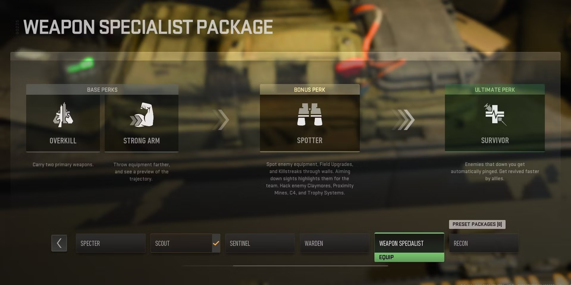 A dobogó második helyére a Weapon Specialistet pakolhatjuk a CharlieINTEL szakértői szerint. Nem véletlenül, hiszen ez az egyetlen Warzone 2 csomag, melyben megtalálhatjuk az Overkill perket. Az Overkillt rengeteg játékos imádja a Call of Duty battle royale módjában, hiszen két Primary fegyvert tarthatnak a segítségével maguknál. . Ideális lehet azon felhasználóknak, akik be szeretnék biztosítani magukat nagy távolságokon, de közelharcban sem szeretnének elvérezni. Néhány felhasználó szerint azonban nem olyan ütős ez, mint az eredeti kliensben, ezért a második hely. A Strong Arm, Spotter és Survivor perkeket találhatjuk még meg a csomagban.