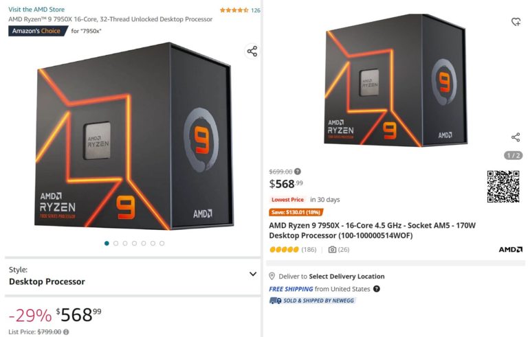 | Ryzen 9 7950X | $569 (-19%) | |||||