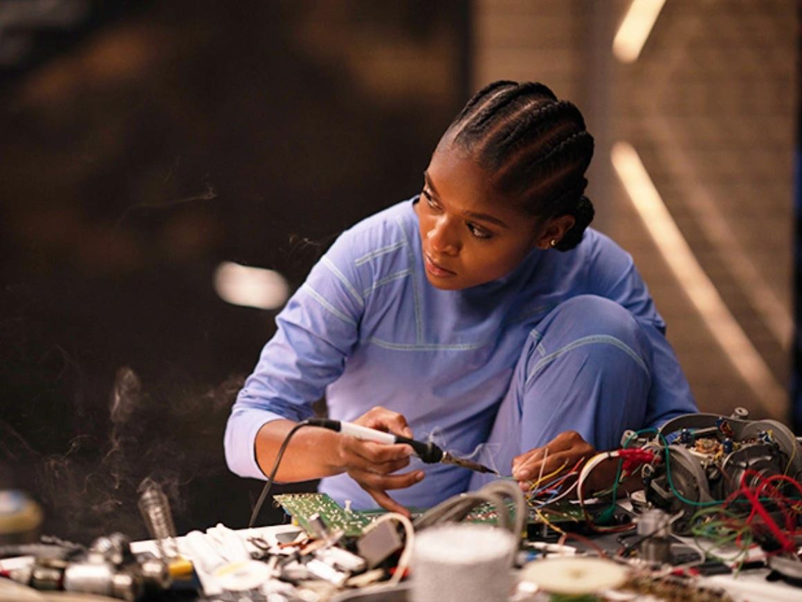 A Black Panther: Wakanda Foreverből érkező Dominique Thorne sorozata lesz, aki megépíti a maga Vasember, bocs Vasszív páncélját. És egy csúcsszuper fegyver ugye úgy készül, hogy kézzel forrasztgatjuk össze a technika szertárból csórt ónszálakkal: