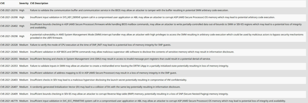 Igen, ezeket a biztonsági réseket olyan processzoroknál is megtalálták, melyek a háztartásokban kaptak helyet, tehát az EPYC adatközpont-processzorok mellett a Ryzen chipeket is érintik – írja összefoglalójában a Tom’s Hardware. Az AMD általában egyébként rendszeresen közzéteszi ezeket a sebezhetőségeket, melyeknek most különösen nagy száma lett. Ezek a biztonsági rések sajnos lehetőséget adnak a hackereknek arra, hogy adatokat lopjanak, vagy vírust juttassanak a számítógépükbe. Mint kiderült, igen súlyos biztonsági rések is napvilágot láttak.