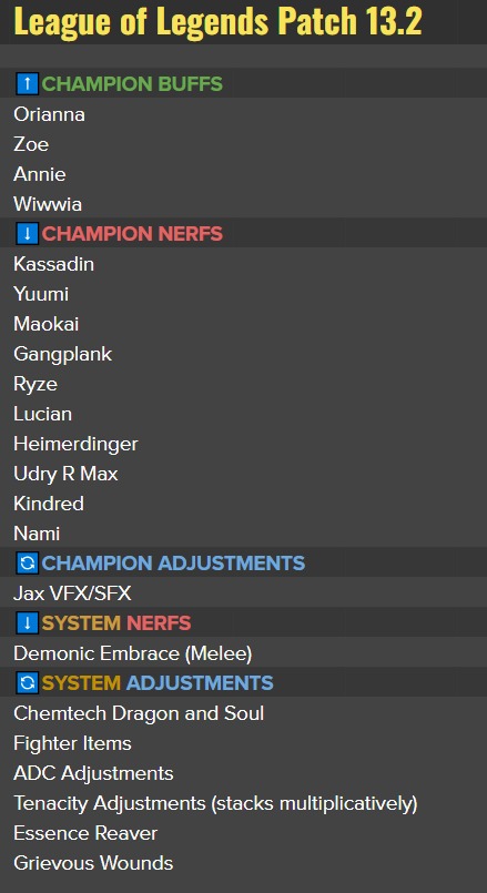 El is kezdett terjengeni az interneten egy kép, amit a Riot Games egyik munkatársa osztott meg. Mindez azért fontos nekünk, mert a 13.2-es frissítésciklus várható nagyobb átalakításait tartalmazza, így elképzelhetjük, hogy mi is fog minket megtalálni hamarosan. Ha unod már a fel-le rohangáló Udyrokat, vagy a rettenetesen kellemetlen Heimerdinger Supportokat, érdemes lesz megnézned, hogy mi érkezik napokon belül.