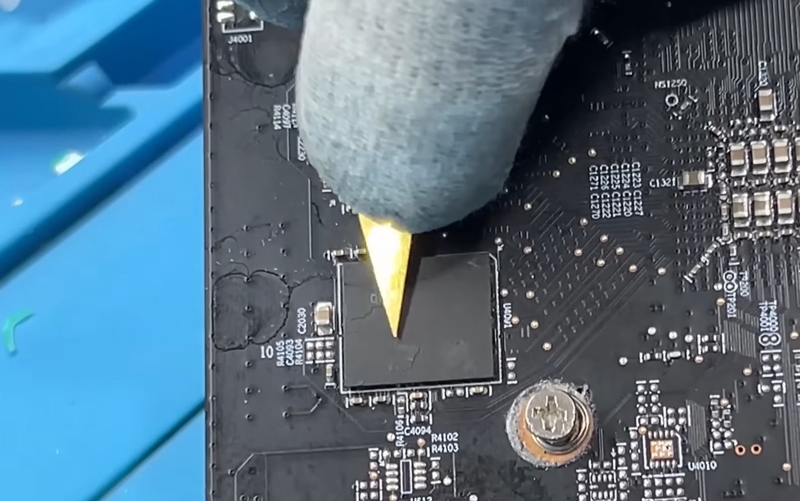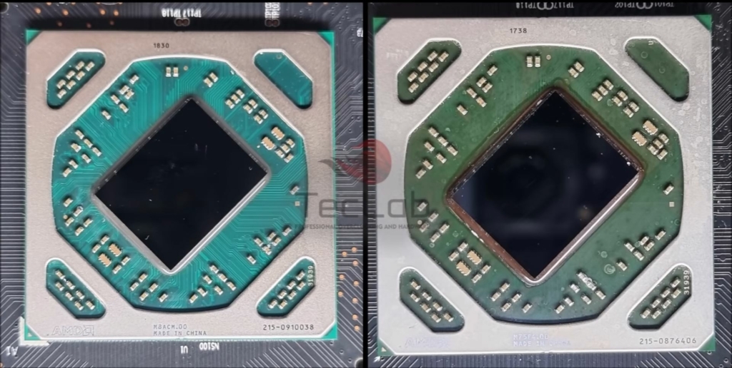 A fenti képeken az árulkodó sárgás elszíneződéseket érdemes megfigyelnünk. Ezeket megtalálhatjuk a memóriák felületein, ahogy a bal oldali képen láthatjuk. A chipeket és a NYÁK-ot is érdemes megnéznünk, szintén zongorázható a színkülönbség a fenti képek (közép, jobb) alapján. A TecLab élő stream keretein belül bontott ki újként árult kártyákat, ám ott is több esetben látható nyoma volt a mókolásnak.