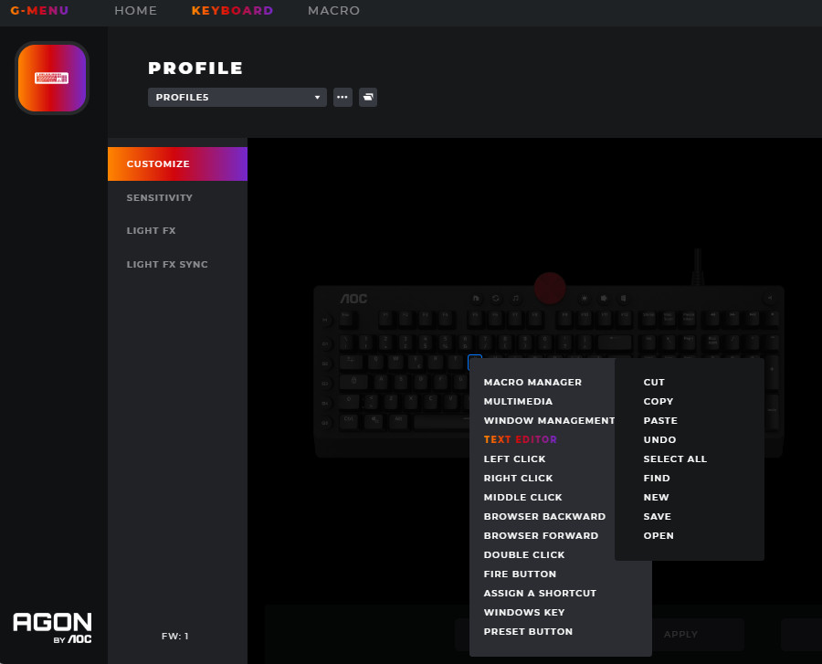 Ez a fajta átfogó, monitorokkal és számos kiegészítővel rendelkező gaming-ökoszisztéma szükségessé tett egy olyan szoftvert, amellyel az összes beállítást egyszerre lehet irányítani és testre szabni. A billentyűzetek és egerek esetében ez a billentyűk és gombok testreszabását, az érzékenység, például az ismétlési sebesség, a polling rate vagy a DPI-szint beállítását jelenti, a headsetek esetében pedig a hangbeállítások kezelését, beleértve a térhangzást is. A G-Menu segítségével a Light FX fényhatás beállításai és a monitor, a billentyűzet, az egér, az egérpad és a headset fényeinek szinkronizálása is kezelhető.