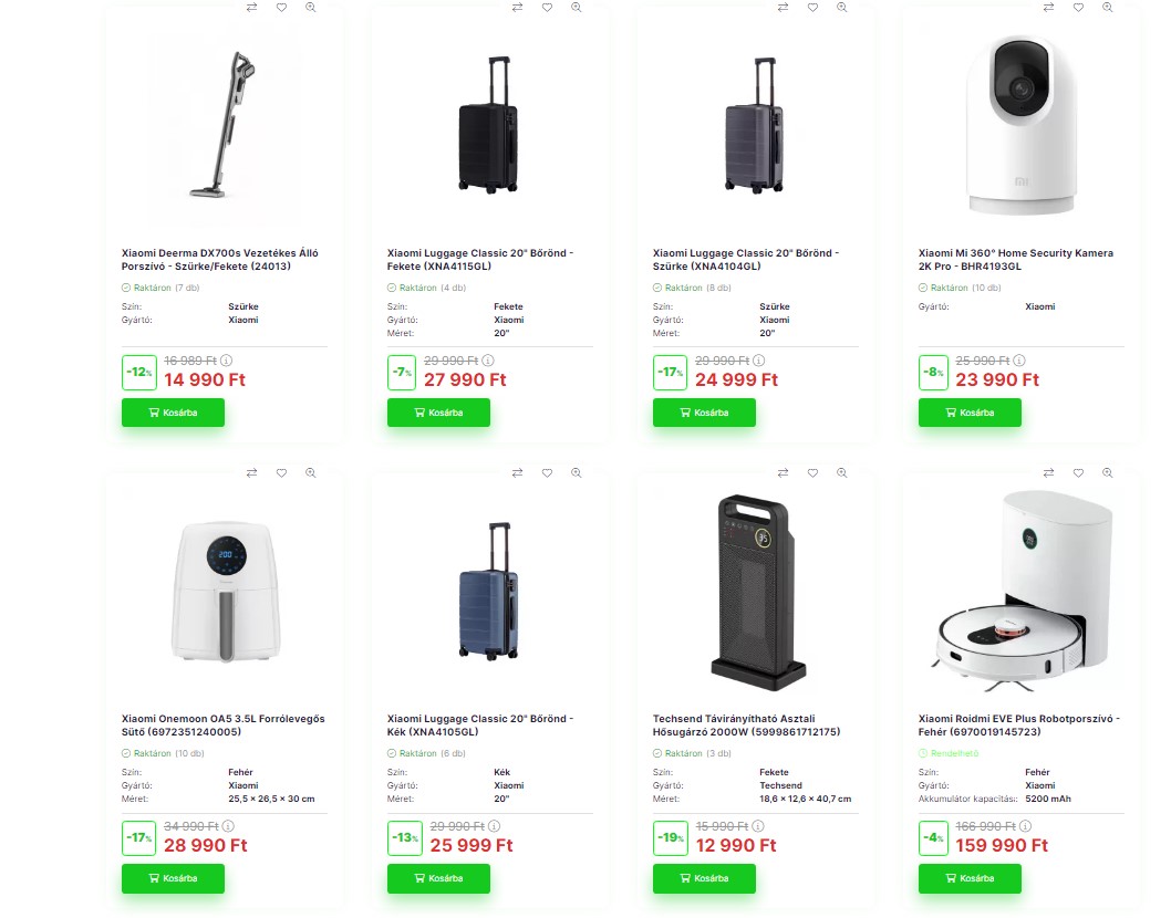 Szintén elmaradhatatlan kategória az egyre okosabb, háztartási eszközök kategóriája. Az Air Fryer még mindig nagy kedvenc, de az okoskamerán és porszívón át, egészen a masszázspisztolyig megtalálunk mindent. Ha pedig egy kellemes utazásra adnánk a fejünket, akkor a kötelező és elegáns bőröndért sem kell máshová mennünk.