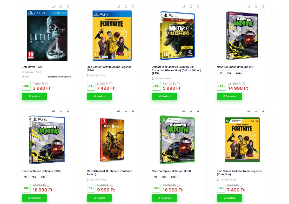 Kezdjük is a kevésbé szokványos kategóriával. Ahogy a képen is látható, már a legfrissebb Need For Speedet is combos kedvezménnyel vásárolhatjuk meg. Ha inkább a Fortnite világa érdekel minket, akkor sem kell messzire menni, hiszen a nem olyan rég debütált Anime Legends Bundle-t több platformra is megvásárolhatjuk. Akkor sem kell aggódni, ha nem a szokványos PlayStation, Xbox vonalon mozognánk, hiszen több Switch játékra is lecsaphatunk a Gamer Húsvét alatt.