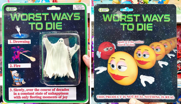 Elég sajátos humor, ami miatt biztosan kétszer is megnézed, ha belebotlasz a művész valamelyik játékába, poszterébe vagy ajándéktárgyába, amin a legmókásabbak *az apróbetűs részek*, benne a vallomással, hogy teljes átverés az, amit a kezedben tartasz. De ha úgy adódna, hogy belebotlasz egybe, jól őrizd meg, mert szerintünk idővel aranyat érnek majd! A Bored Panda segítségével összegyűjtöttük 40-et az „Obvious Plant” legmenőbb termékei közül, és a nem angolosok kedvéért pár szavas értelmezést is írtunk hozzájuk.