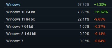A Windows 10 népszerűsége lassú mértékben, de folyamatosan csökkent egy ideig, mely nem is volt meglepő. A kihívó házon belül érkezett a Windows 11 személyében. Novemberre azonban valami megtört, veszíteni kezdett a népszerűségéből az új verzió, míg a Windows 10 és 7 erősödni tudott. A meglehetősen kemény gépigénynek köszönhetően még akár hosszú évekbe is beletelhet az elkerülhetetlen váltás, előbb-utóbb a Windows 10 támogatása is megszűnik majd. Idén is folytatta menetelését a Win 11, március elejére már átlépte a 32%-os határt. Ez az érték januárban még csak 30% volt. Áprilisban azonban brutális csökkenést olvashatunk le, alig 22% volt csak a Windows 11 felhasználók aránya Steamen. Ez nem tűnik túl reálisnak, igaz? Hamarosan a miértre is választ adunk.