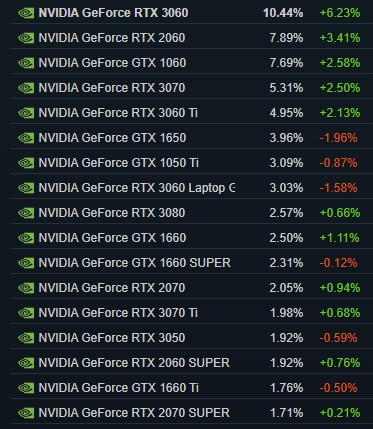Hosszú hónapok, talán évek GTX 1060 uralma után megtört a jég 2023 elején, sokáig a GTX 1650 vezetett minden kategóriában. A csökkenő áraknak köszönhetően egyre több játékos gépébe került aktuális generációból származó GPU. A márciusi gyűjtés azonban itt is jelentősen eltérő adatokat mutat. A GTX 1650 már sehol, a 3060, 2060 és 1060 triója uralja a virtuális dobogót. A Érdekesség, hogy a DirectX 10,11,12 és Vulkan GPU ranglistában az első 10 helyen kizárólag csak Nvidia videókártyát találunk.