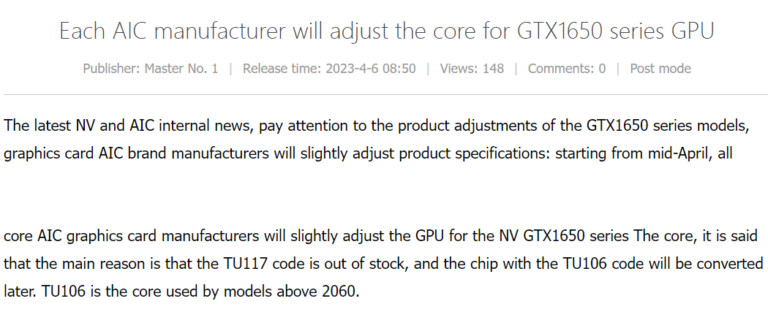 A TU117-es egységek helyett a sokkal drágább modellekbe szánt TU116 és TU106 GPU-k kerülhetnek az új kártyákra. Ezek alapvetően gyorsabbak, ellenben többet is fogyasztanak. Szerencsére szoftveresen le lehet tiltani az extra magokat és némi gyári „tuning” után a fogyasztás sem lesz eltérő a jelenlegi példányoktól. Érdekes látni, hogy micsoda igény van még a közel négy éves, belépő szintű kártyákra is.
