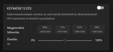 Míg a DLSS 2/3 csak a legmodernebb kártyákon érhető el, addig az Image Scaling / Képméretezés funkció jóval régebbi kártyákon is bekapcsolható a GeForce Experience beállításaiban. A játékokat alacsonyabb felbontáson rendereli ki a videókártyánk, az így kapott képet pedig mesterségesen próbálja feljavítani. Több beállítási % is a rendelkezésünkre áll, az élességen is állíthatunk, a saját szájízünkre formálva így a képet. Gyengébb masinák esetében mindenképp érdemes lehet kipróbálni ezt a funkciót is.