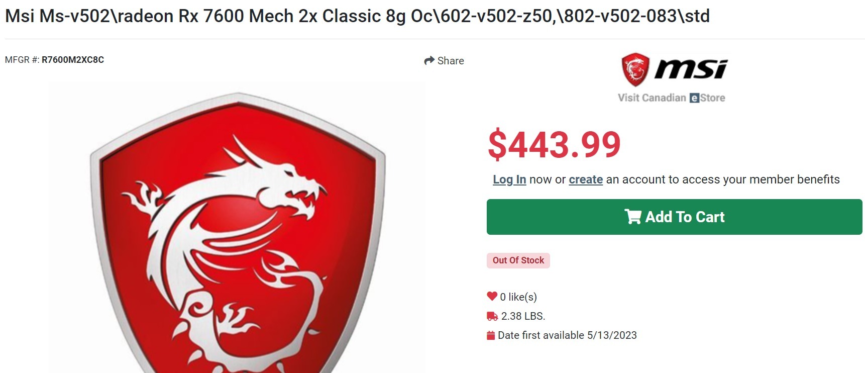 Ismét a Videocardz informátorai voltak résen. Az egyik kanadai bolt, a PC Canada két külsős gyártótól származó AMD Radeon RX 7600-at is felpakolt a weboldalára. A Sapphire Pulse 451.99 kanadai dolláros, míg az MSI Mech 2X Classic 443.99-es kanadai dolláros árcédulát kapott.
