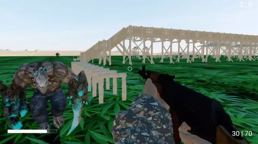 A kreatív alkotó digitálisan felépítette a nyírmártonfalvai lombkoronasétány méretarányos mását, majd a valós helyszínnek megfelelően játszótéri elemekkel és padokkal övezve egy szépen tarra vágott rétből lett kannabiszültetvény közepére helyezte. A csodás FPS-ben kapsz a kezedbe egy gépkarabélyt, amivel meg kell védened magad a váratlan helyekről rád törő – és meglehetősen gyors – démonokkal szemben. Az irányítás a shooterektől megszokott módon a W, A, S, D billentyűkkel történik, ugrani a space-szel tudsz, elsütő gomb: bal klikk.