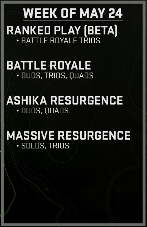Az első időszakban a fejlesztők nem igazán szeretnék túlzásba vinni a módokat, hiszen rengeteg újdonság várja a játékosokat. A Season 2-ben végre megérkezett a kisebb pálya és a Resurgence mód, máris színesebb repertoár várt a rajongókra. Season 3-ban talán végre újra beindult az igazi Warzone életérzés, a szezon második felében pedig a várva várt Warzone 2 Ranked is megérkezett.