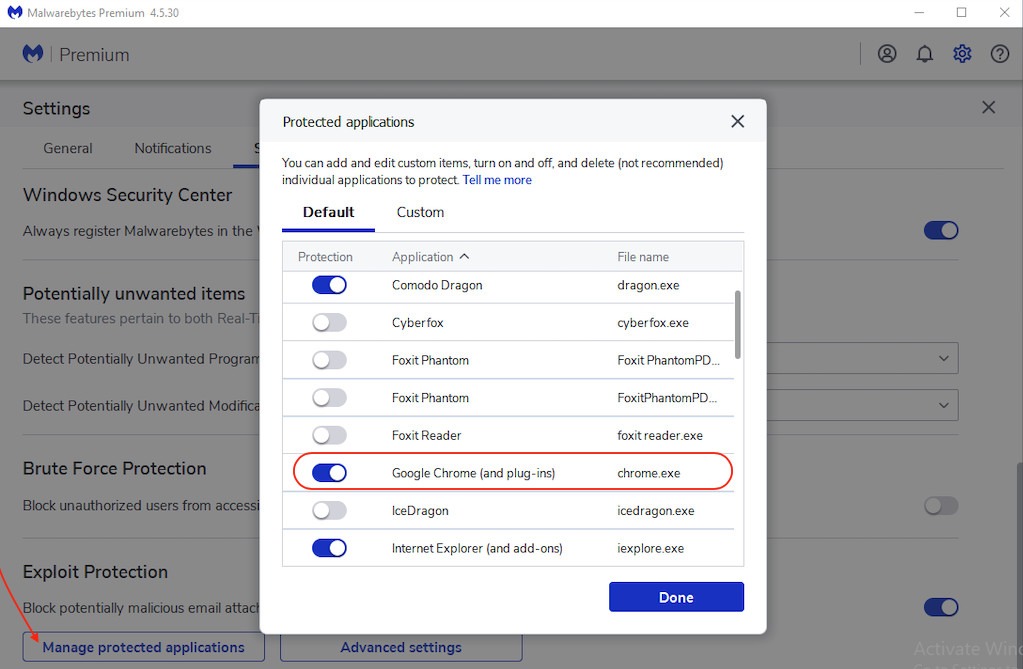 Bizony, a Windows 11 frissítése elérte, hogy a Malwarebytes kis túlzással kártevőként ismerje fel a Google böngészőjét. Érdemes lehet ideiglenesen kikapcsolni a program Protected Applications részlegében a Chrome védelmét, sokaknál ez sikert hozott. Ennek módját a fenti képen meg is figyelhetjük.